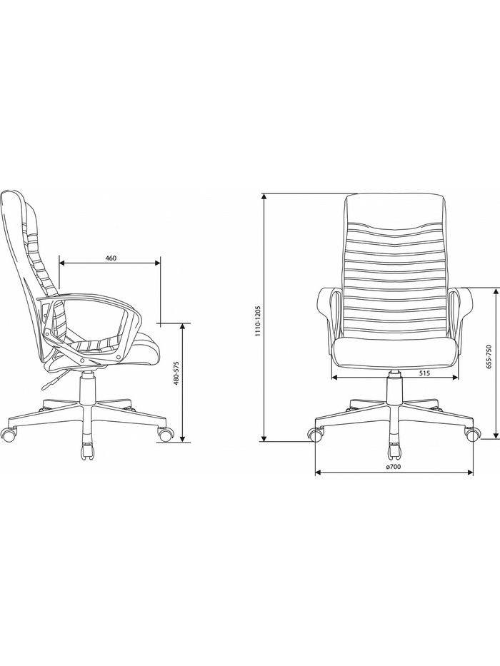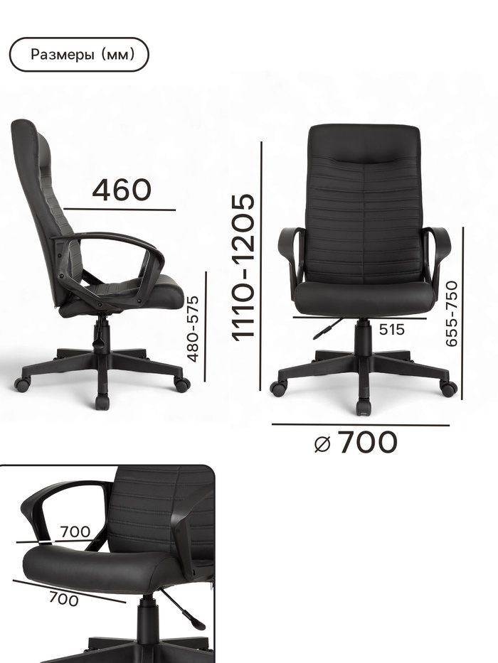 Крестовина диаметром 700 мм с пластиковыми колесами диаметром 50 мм обеспечивает устойчивость и легкое перемещение по полу.