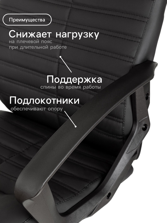 Пластиковые подлокотники обеспечивают опору для рук, снижая нагрузку на плечевой пояс при длительной работе.