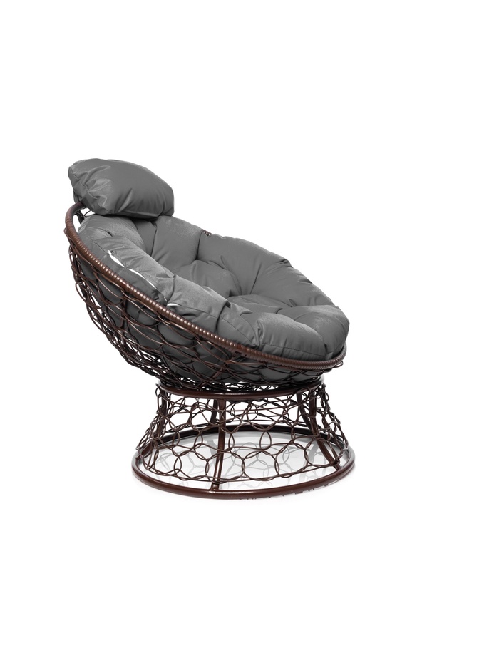 Кресло ПАПАСАН мини с ротангом коричневое, серая подушка, шт