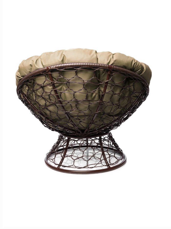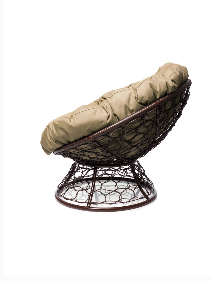 Кресло ПАПАСАН с ротангом коричневое, бежевая подушка
