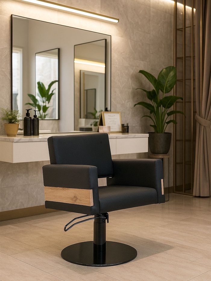 Кресло парикмахерское ТЭКТУМ, гхромированный гидроподъемник с блокировкой, хромированное пятилучье н