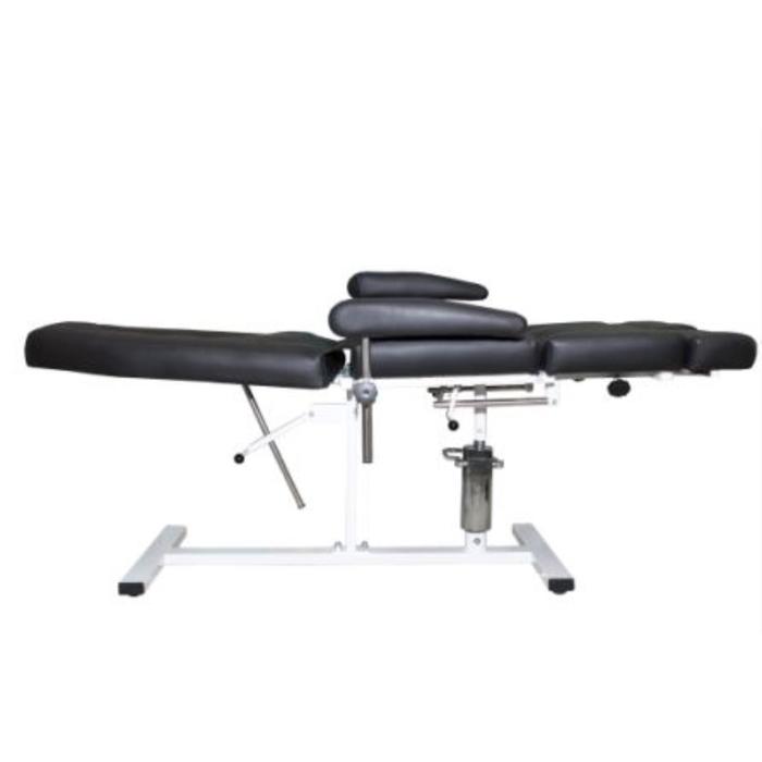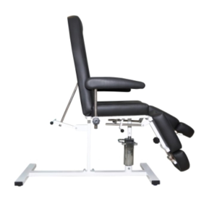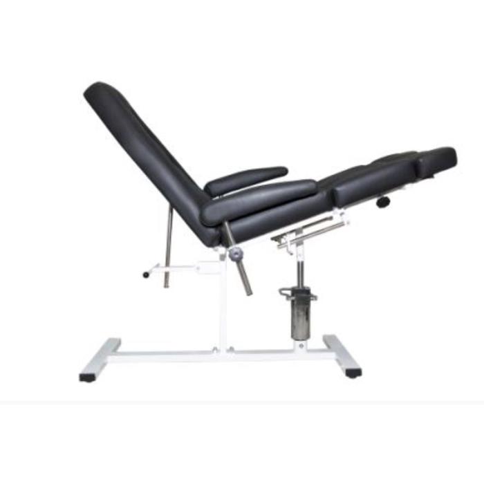 Ножки оснащены механической регулировкой по высоте, спинка раскладывается в горизонтальное положение.