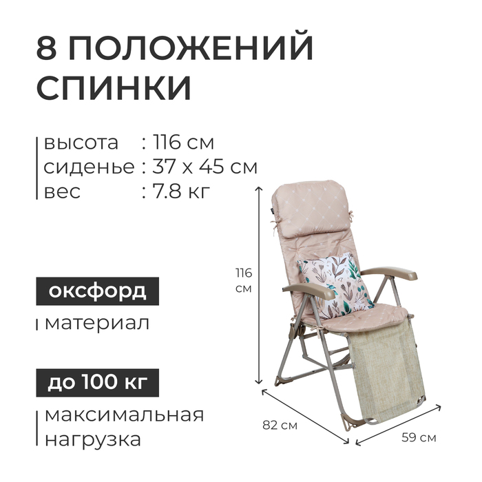 Кресло-шезлонг подходит для отдыха в помещении и на открытом воздухе. В комплект входит матрас и декоративная подушка.