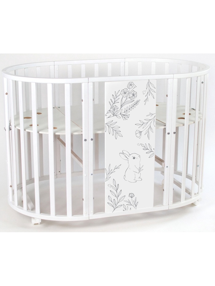 -Овальная кроватка трансформируемая в круглую кровать , манеж для игр, диванчик, приставную, 2 стульчика + столик
