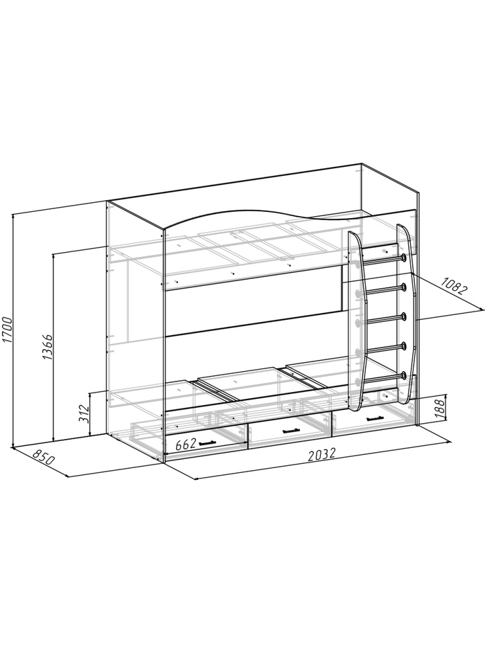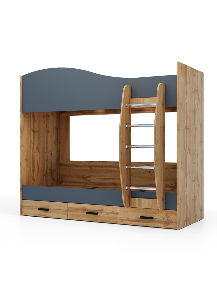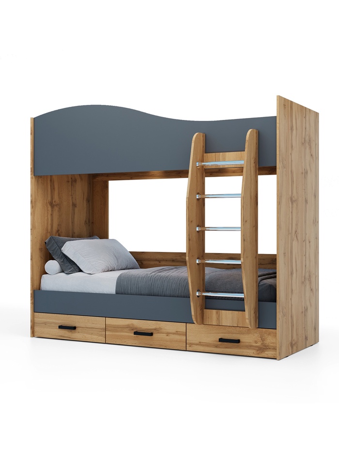 Кровать двухъярусная с ящиками, 2030х1090х1700, Венге темный/Венге светлый - это и удобные спальные места для двоих ребят, и вместительная система хранения, включающая широкие выдвижные ящики для белья, в которые можно сложить и игрушки, и одежду. Кровать выполнена из прочной ЛДСП с эффектным покрытием и будет отлично смотреться в интерьере любого стиля. Система безопасности модели на высоте, благодаря качеству материалов и продуманной конструкции с задними стенками и высоким фигурным бортиком на верхнем уровне.