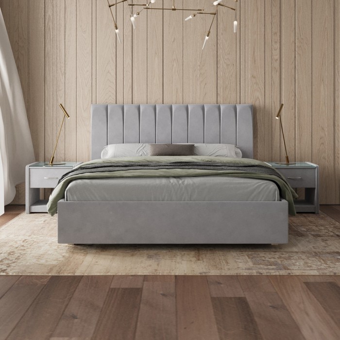 Высочайшее качество материалов и внимание к деталям делают эту кровать идеальным выбором для тех, кто ценит утончённый стиль и непревзойденный комфорт в одном изделии. Обивка кровати выполнена из премиального велюра, который приятен на ощупь и выглядит роскошно. Кроме того, он устойчив к истиранию и прост в уходе, что гарантирует долгий срок службы кровати.