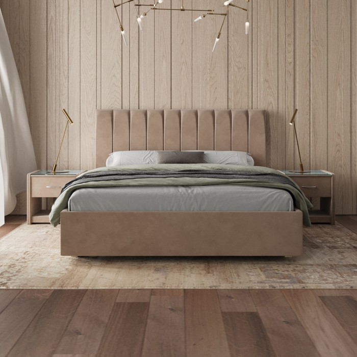Кровать двуспальная «Алькасар», с мягким изголовьем, 2000×2000 мм, обивка велюр, цвет пески касабланка