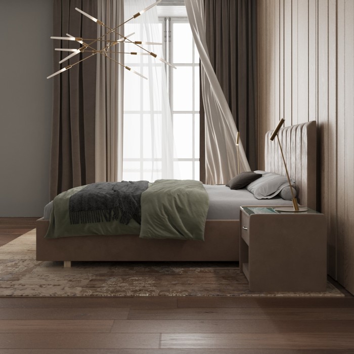 Высочайшее качество материалов и внимание к деталям делают эту кровать идеальным выбором для тех, кто ценит утончённый стиль и непревзойденный комфорт в одном изделии. Обивка кровати выполнена из премиального велюра, который приятен на ощупь и выглядит роскошно. Кроме того, он устойчив к истиранию и прост в уходе, что гарантирует долгий срок службы кровати.