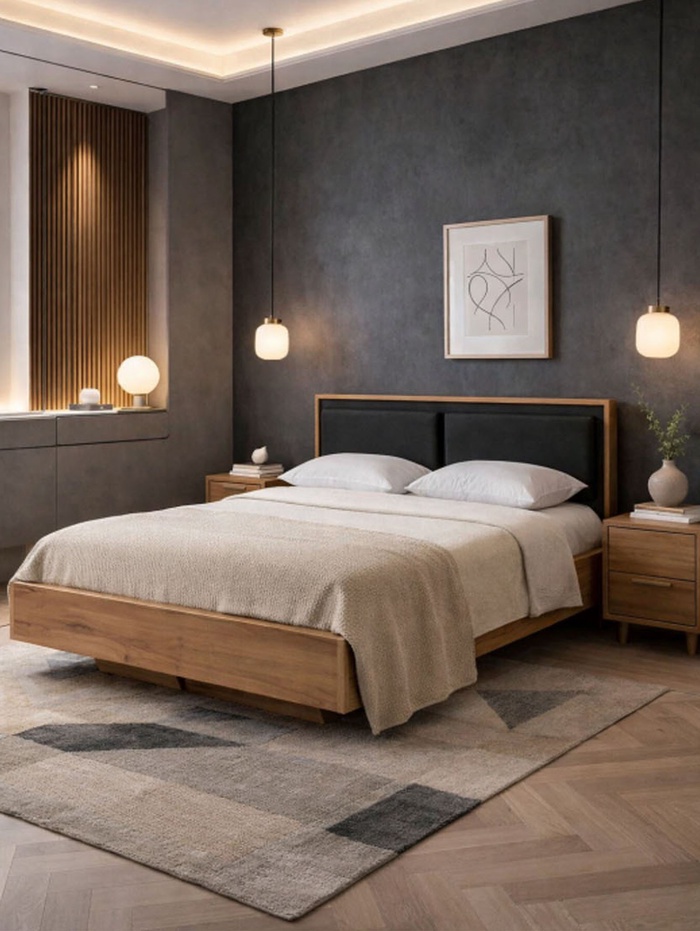 Кровать двуспальная Клауд 160х200 парящая дуб крафт золотой / антрацит