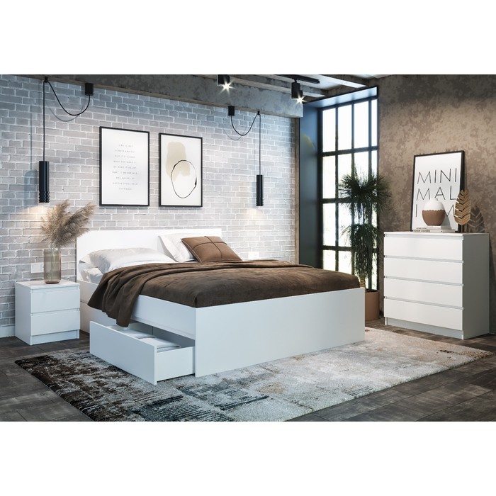 Кровать двуспальная «Клик Мебель. Мадера», с основанием, 2 ящика, спальное место 1600×2000 мм, цвет белый