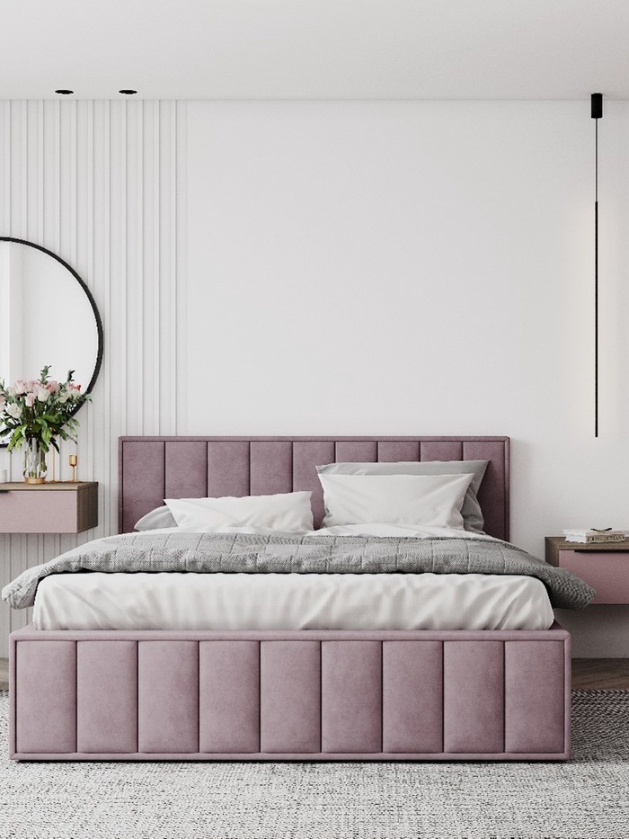 Кровать двуспальная «Лана», с мягким изголовьем, с подъёмным механизмом, 1600×2000 мм, велюр, цвет пудра