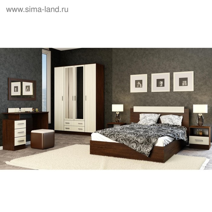 Кровать двуспальная идеально подходит для любителей комфорта и гармонии. Станет отличным выбором для тех, кто ценит стиль и удобство. Высокое, массивное изголовье с декоративной планкой - украшение кровати. Основание состоит из ЛДСП щитов.