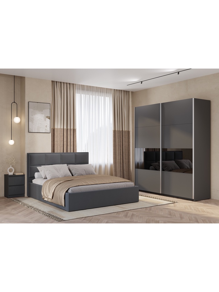 Кровать двуспальная «Линда КР – 16», 1732×1100×2100 мм, с ортопедическим основанием, с подъёмным механизмом, цвет графит