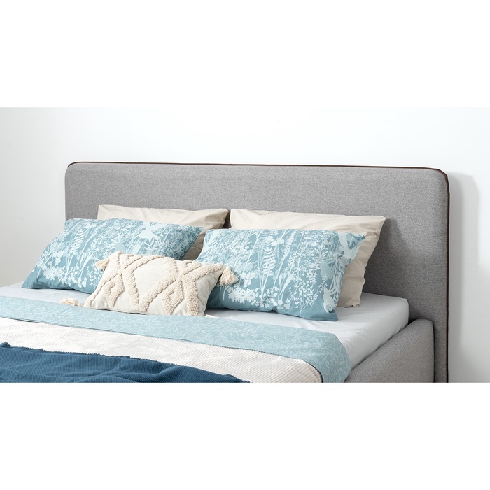 - Скруглённый торец изголовья с контрастным кантом: аккуратная отделка и визуальная гармония.