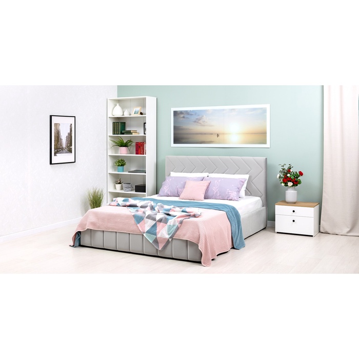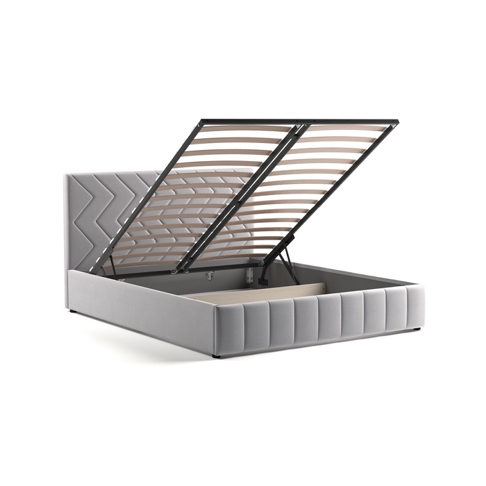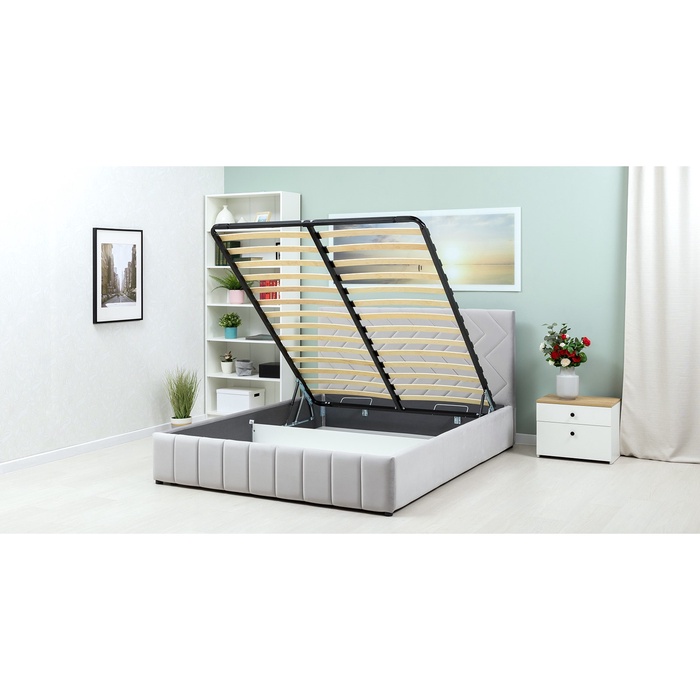 Кровать двуспальная «Милана», с подъёмным механизмом, спальное место 1600×2000 мм, велюр, цвет светло – серый