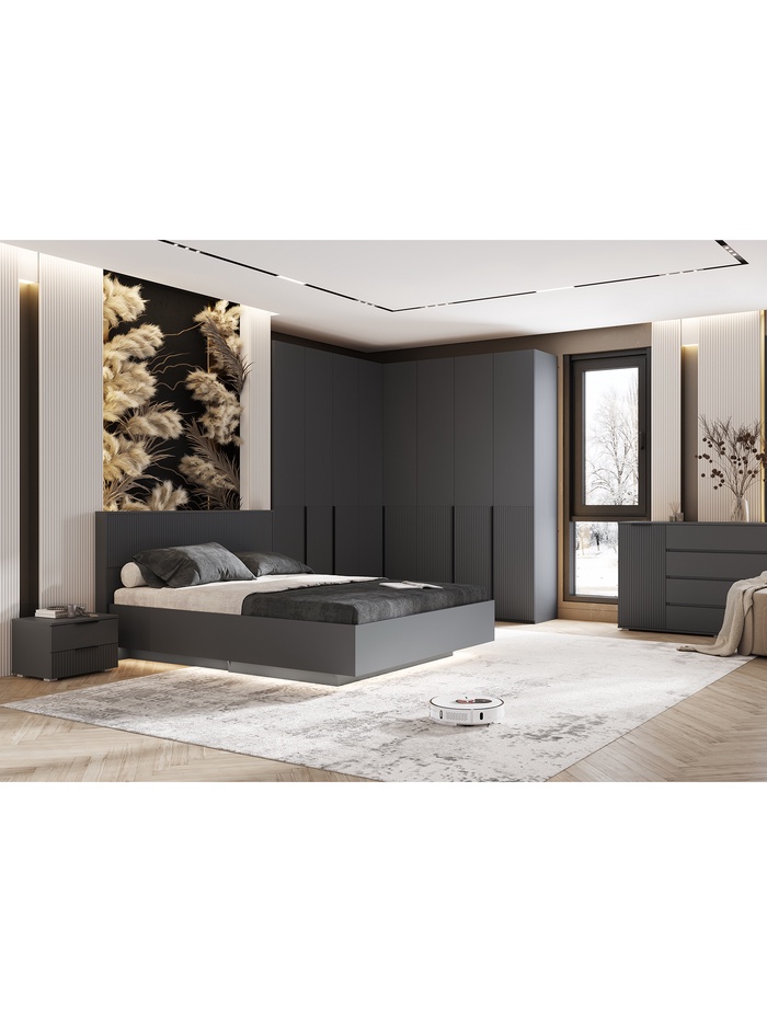 Кровать двуспальная парящая «Марвэл», с подъёмным механизмом, 1600×2000 мм, цвет графит/графит