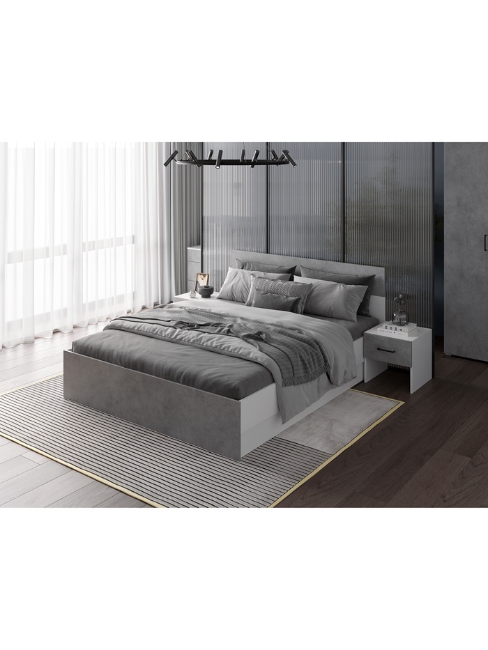 Кровать двуспальная "Юнона", 1600х2000, Бетон/Белый