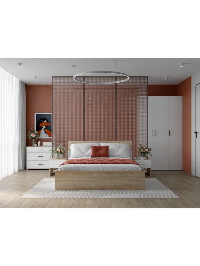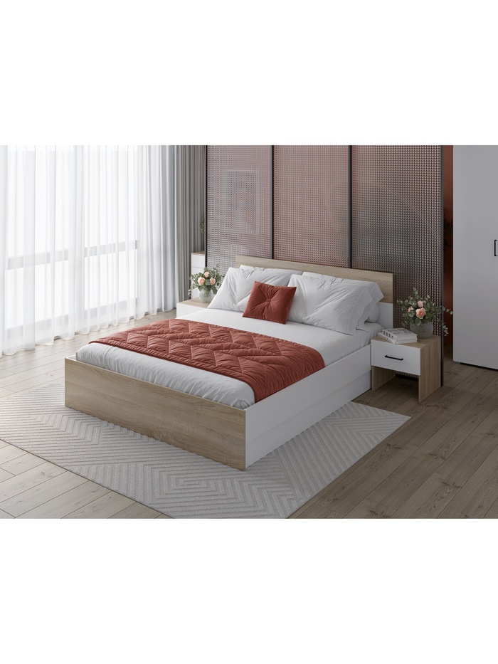 Кровать двуспальная "Юнона", 1600х2000, Дуб сонома/Белый