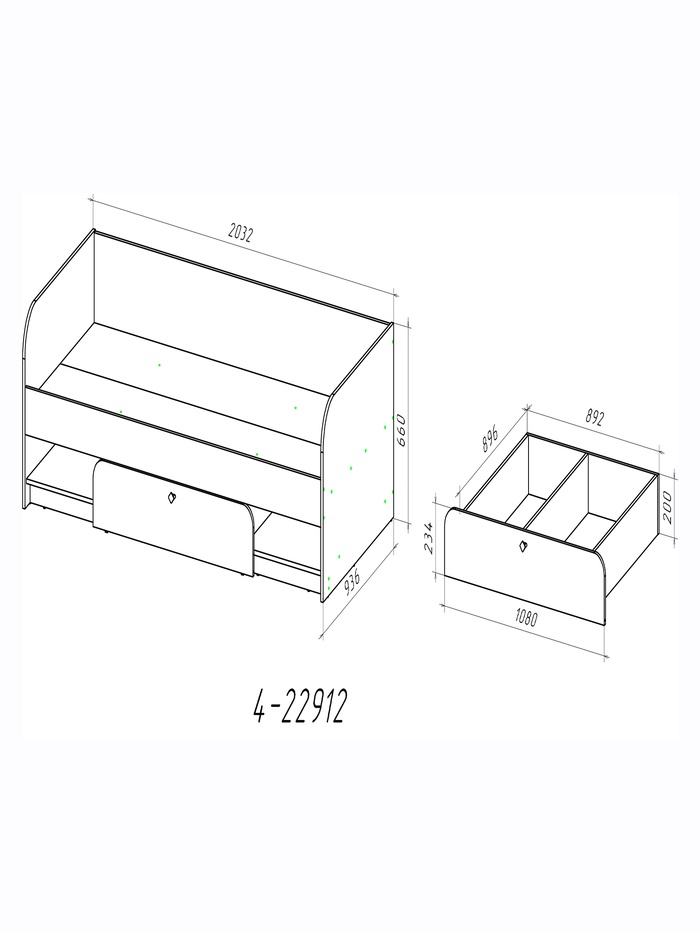 Кровать односпальная «МАРТИ», 1 ящик, 2032×936×660 мм, цвет графит/рамух белый