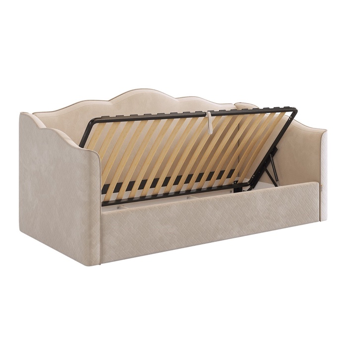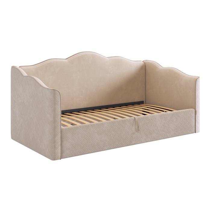 Кровать-софа Лея - это мягкая кровать, выполнена в нежных оттенках, что позволяет ей гармонично вписаться в любой интерьер. Обивка из качественного велюра не только приятна на ощупь, но и легка в уходе.