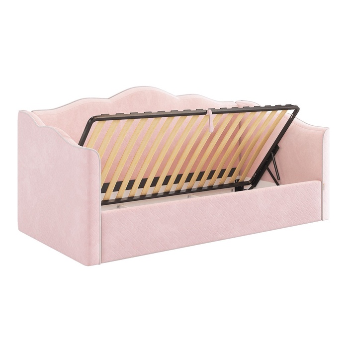 Кровать-софа Лея - это мягкая кровать, выполнена в нежных оттенках, что позволяет ей гармонично вписаться в любой интерьер. Обивка из качественного велюра не только приятна на ощупь, но и легка в уходе.