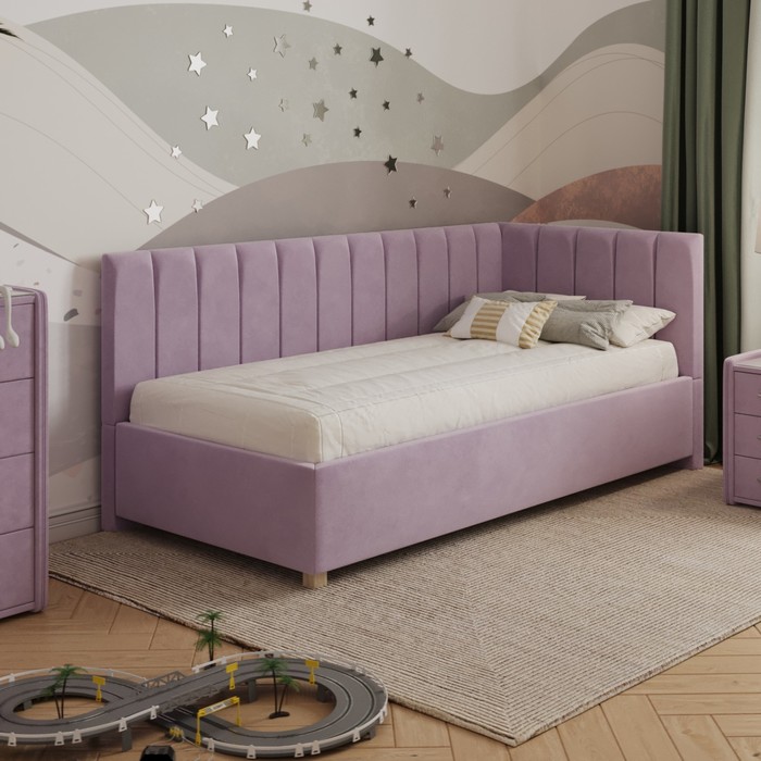 Кровать - тахта «Помпиду», правая, с подъёмным механизмом, 900×1900 мм, премиум велюр, цвет бутоны вишни
