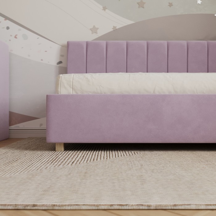 Кровать Помпиду выполнена из премиального велюра, который дарит ощущение мягкости и уюта. Материал устойчив к истиранию и прост в уходе.