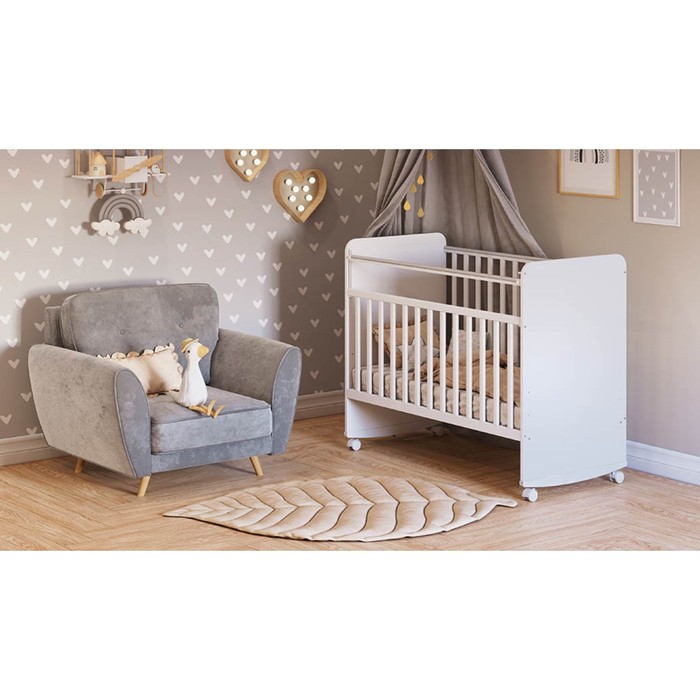 Благодаря колёсам, кроватку легко перемещать по комнате.