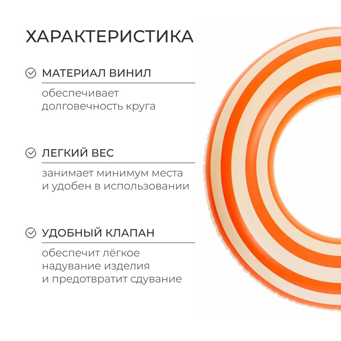 Надувной круг предназначен для плавания в бассейне и открытых водоёмах. Изделие поможет ребёнку научиться плавать. В сдутом виде круг занимает мало места, его удобно брать с собой.