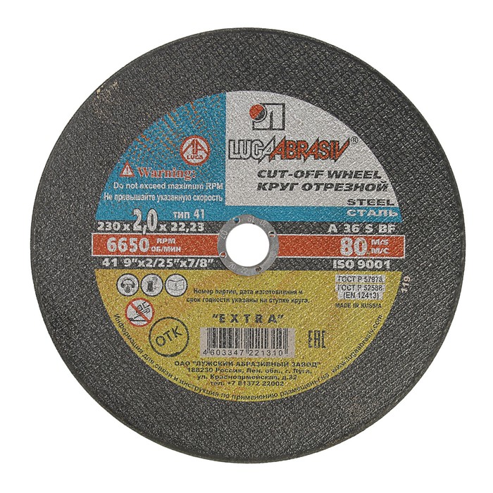 - Оптимальный абразивный состав: Маркировка A 36 S BF 80 гарантирует высокую производительность. Эффективно режет сталь, чугун, металлопрокат.