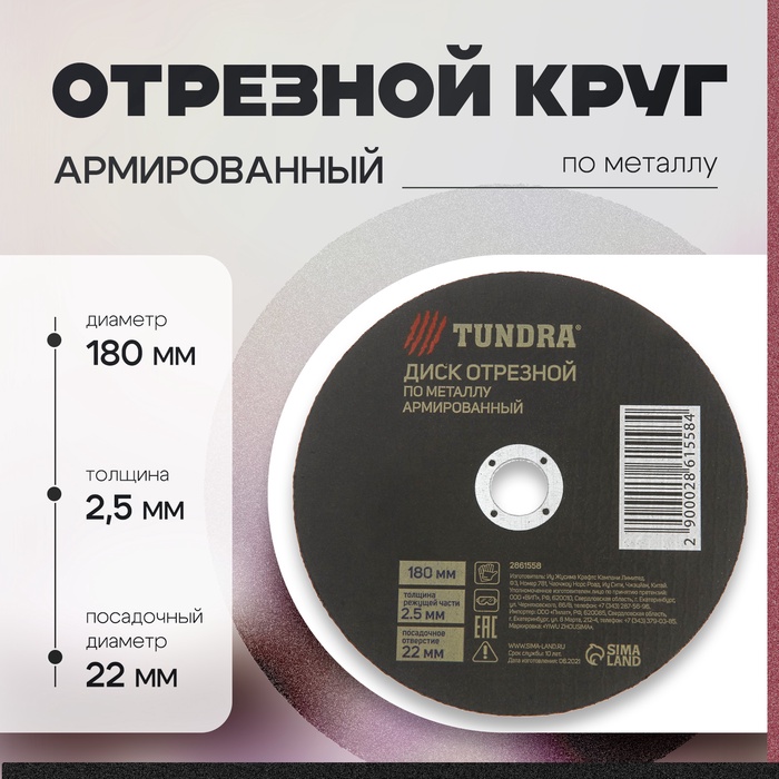 Мощный рез с увеличенным ресурсом! Армированный отрезной круг ТУНДРА 180x2.5x22 — это баланс скорости и долговечности для интенсивной работы по металлу. Диск рассчитан на высокие нагрузки и справляется с арматурой, уголком и толстостенным прокатом.