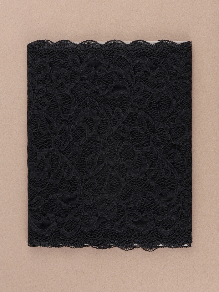 Эластичное кружевное полотно не имеет тканной основы. Благодаря своей пластичности кружево тянется, а переплетения нитей формируют воздушную выразительность.