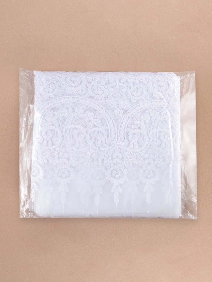 Неэластичная ткань с изысканным повторяющимся узором по краю. Кружево не тянется, а тонкая сетка придаёт любому изделию с кружевом лёгкости и элегантности. С таким кружевом удобно работать, ткань легко драпируется и не крошится по краям. Можно использовать для пошива нижнего белья, платьев, топов, палантинов, а также для декорирования аксессуаров: перчаток, головных уборов и так далее.