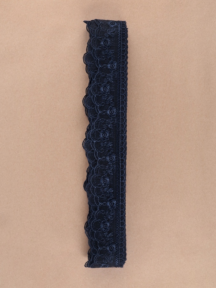 Тёмно-синее кружево на сетке станет незаменимым элементом вашего швейного проекта. Это плетение из полиэстера на сетчатой основе отлично подходит как для декорирования, так и для создания одежды и аксессуаров. Ширина в 40 мм позволяет использовать его в самых разнообразных креативных решениях.