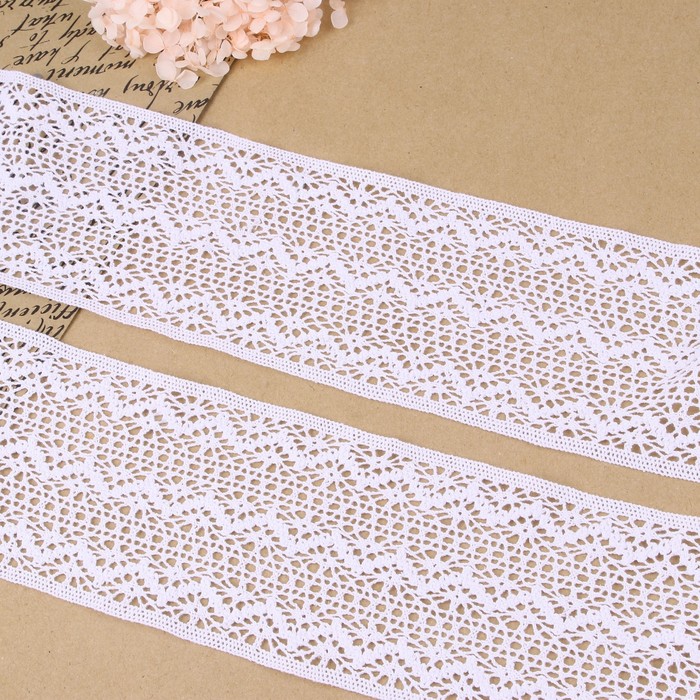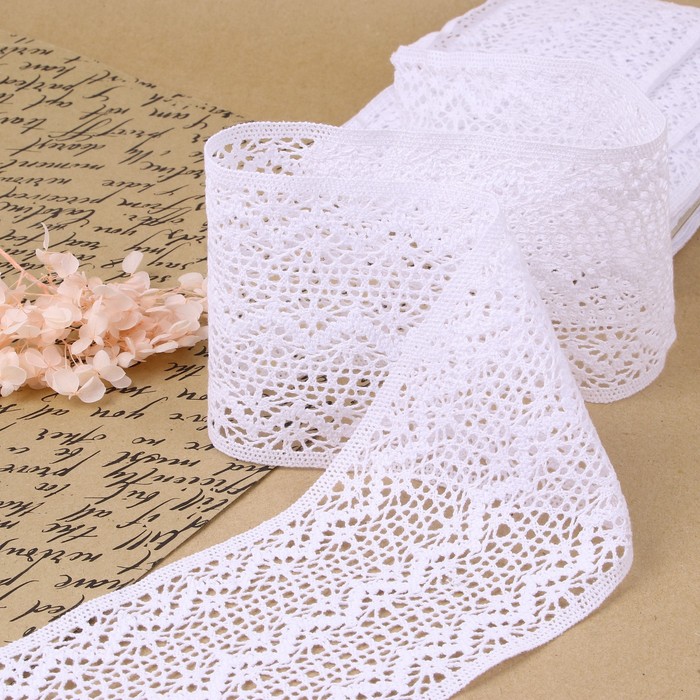 Вязаное кружево легко спутать с hand-made – рисунок у него сложный и выразительный. Узоры, созданные из переплетения множества нитей, принимают нужную форму и красиво смотрятся на любом изделии. Вязаное кружево — отличный вариант для декора одежды и домашнего текстиля. А также если хотите дополнить аксессуар деталью, будто связанной крючком, такой вариант отлично подойдёт.
