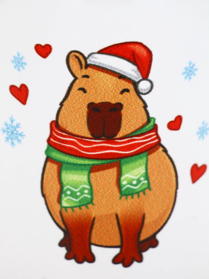 Новогодняя кружка с капибарой — это не просто пожелание, а тёплое, немного неожиданное «С Новым годом». Белая гладкая керамика служит фоном для главного героя: капибары в праздничном образе — с шапочкой, шарфиком — спокойной, умиротворённой, будто она уже знает: лучший подарок — это возможность быть собой, даже в самый шумный праздник.