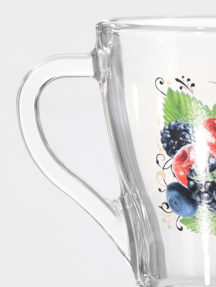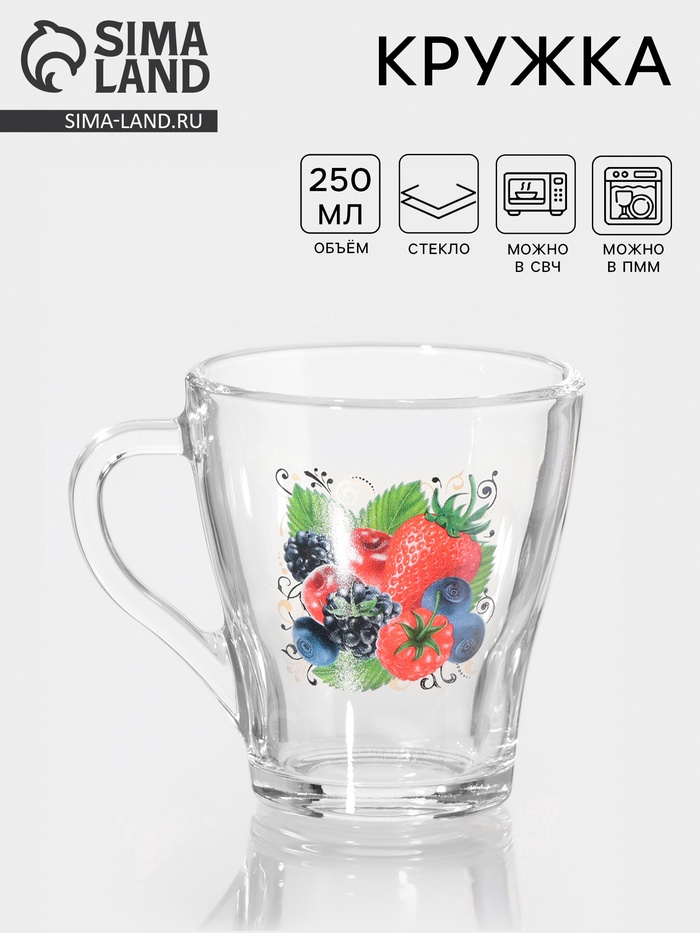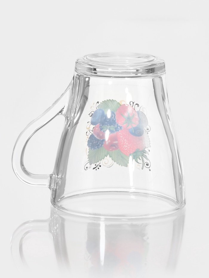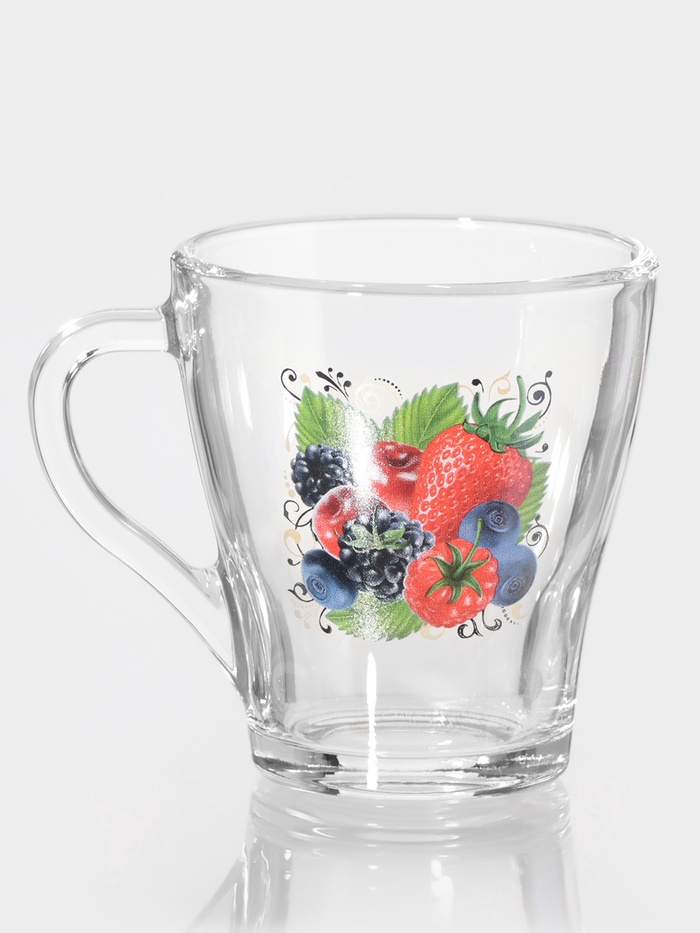 Кружка с ягодным дизайном станет отличным спутником для любителей освежающих напитков. Прозрачное стекло и стильный рисунок придают ей уникальность, делая каждую трапезу более яркой и запоминающейся.