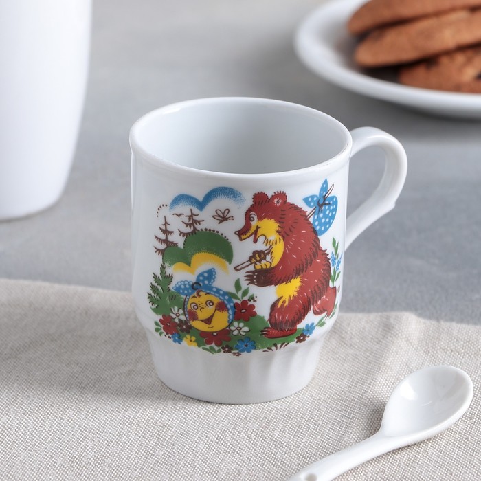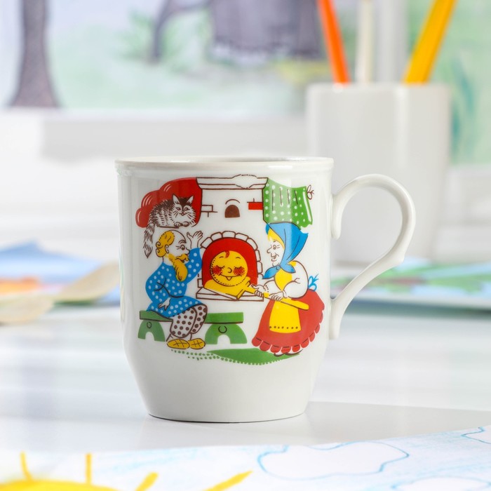 Кружка детская Дулевский фарфор «Русское поле. Весёлый Колобок», 210 мл, d=7 см, белая, рисунок МИКС