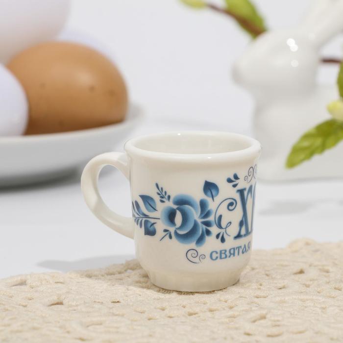 Кружечка для святой воды объемом 30 мл. Небольшую кружку для святой воды можно брать с собой в церковь или пить из неё воду дома. Кружечку можно преподнести в качестве подрака на Пасху, Рождество или другой православный праздник.