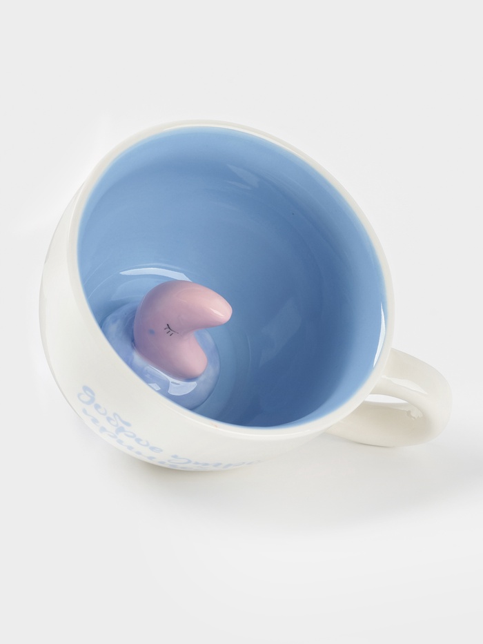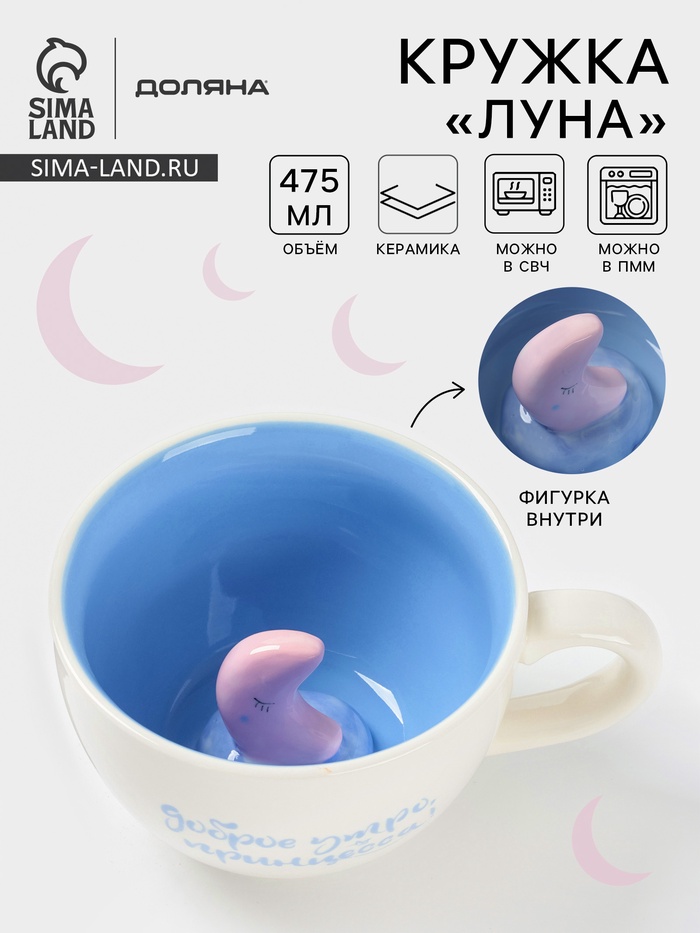 Волшебная керамическая кружка большого объема (475 мл) в нежных бело-голубых тонах. Украшена милой фигуркой луны внутри и надписью «Доброе утро, принцесса!». Отличный способ начать день с улыбки и почувствовать себя особенной. Можно использовать в микроволновой печи и посудомоечной машине.