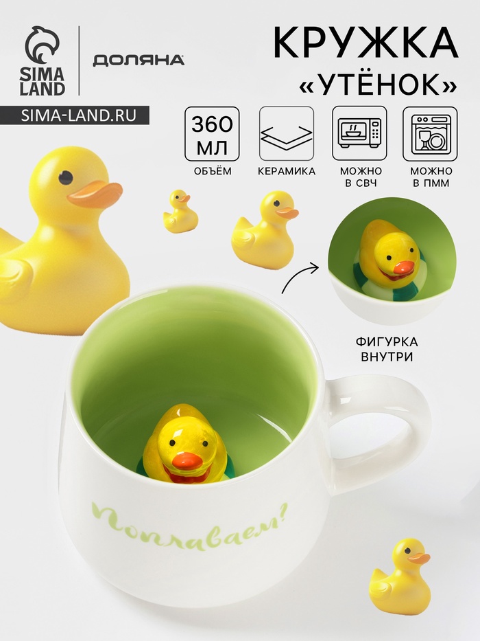- Фигурка-сюрприз: Милый утенок внутри кружки вызовет улыбку.