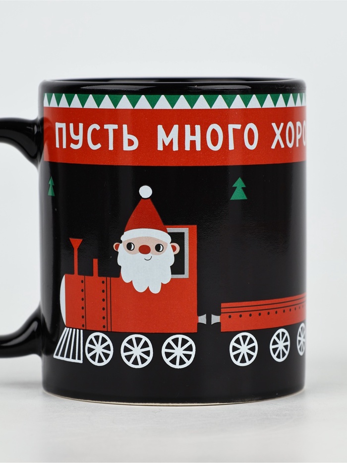 Кружка-хамелеон «Много хорошего» — это тихое предвкушение, упакованное в керамику. Снаружи — чёрная основа, как спокойная ночь перед утром, и новогодний рисунок, будто нарисованный в полумраке: намёки на ёлку, свет, силуэты. Ничего определённого — только ожидание. Но стоит налить горячий напиток — и кружка *раскрывается*: из тени появляются детали, краски, надпись — будто сама жизнь отвечает на вопрос, заданный шёпотом: «А будет ли что-то хорошее?..» — «Будет. Много».