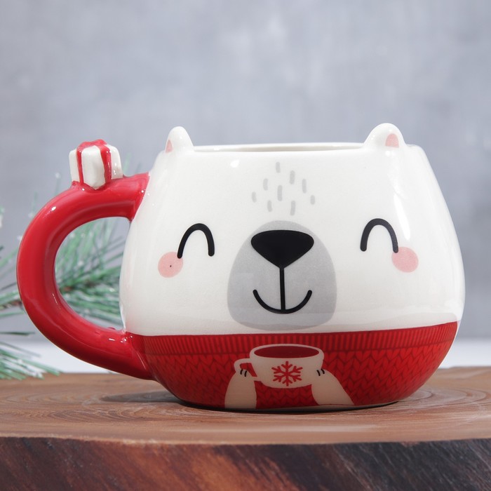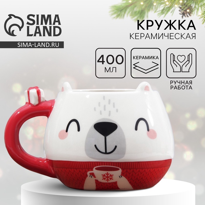Новогодняя керамическая кружка в форме мишки — идеальный подарок и стильный аксессуар для вашей кухни или офиса. Объём кружки составляет 400 мл, что позволяет наслаждаться горячим напитком в уютной обстановке.