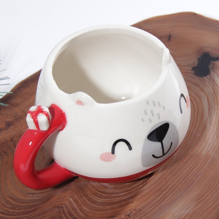 - Эстетичный внешний вид: новогодняя кружка в форме мишки станет ярким акцентом на вашем столе и поднимет настроение;