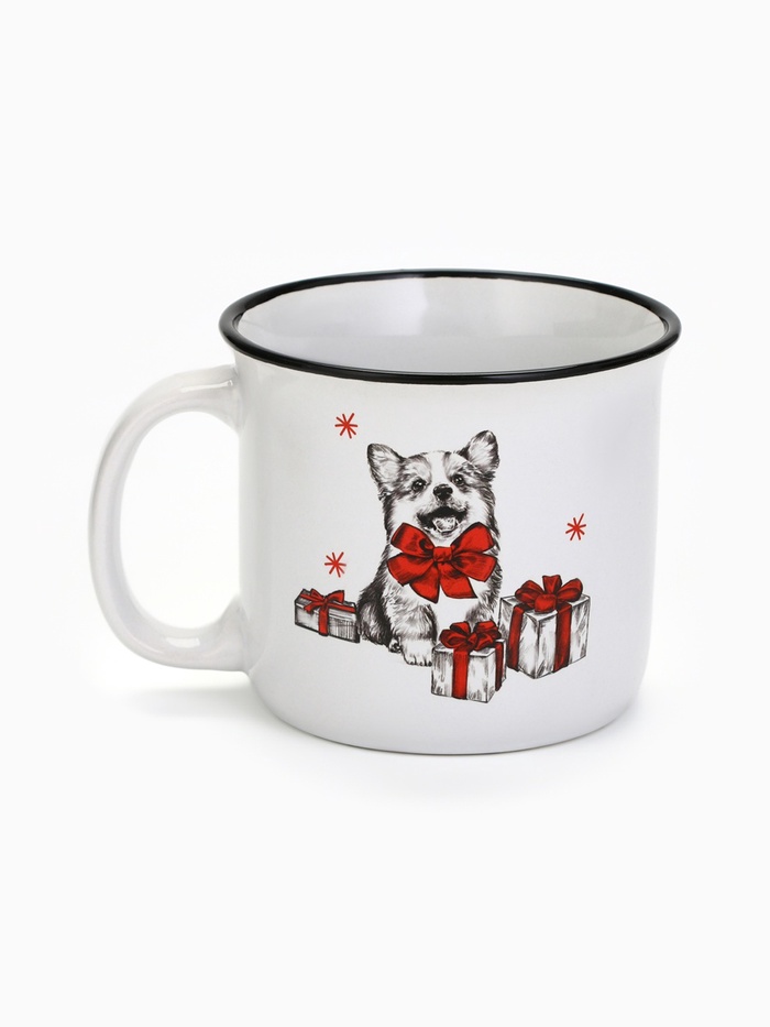 Кружка «Корги» — это зимний день, в котором всё сошлось: снег за окном, тишина после обеда и корги, который обходит ёлку не в поисках подарков, а просто потому, что ему нравится водить хороводы. Белая керамика, как свежевыпавший снег, тонкая чёрная обводка — как контур утреннего света на подоконнике, и роспись: корги в кругу подарков, с короткими лапками и решимостью, будто знает — главный подарок уже получен: быть здесь. Сейчас. С вами.