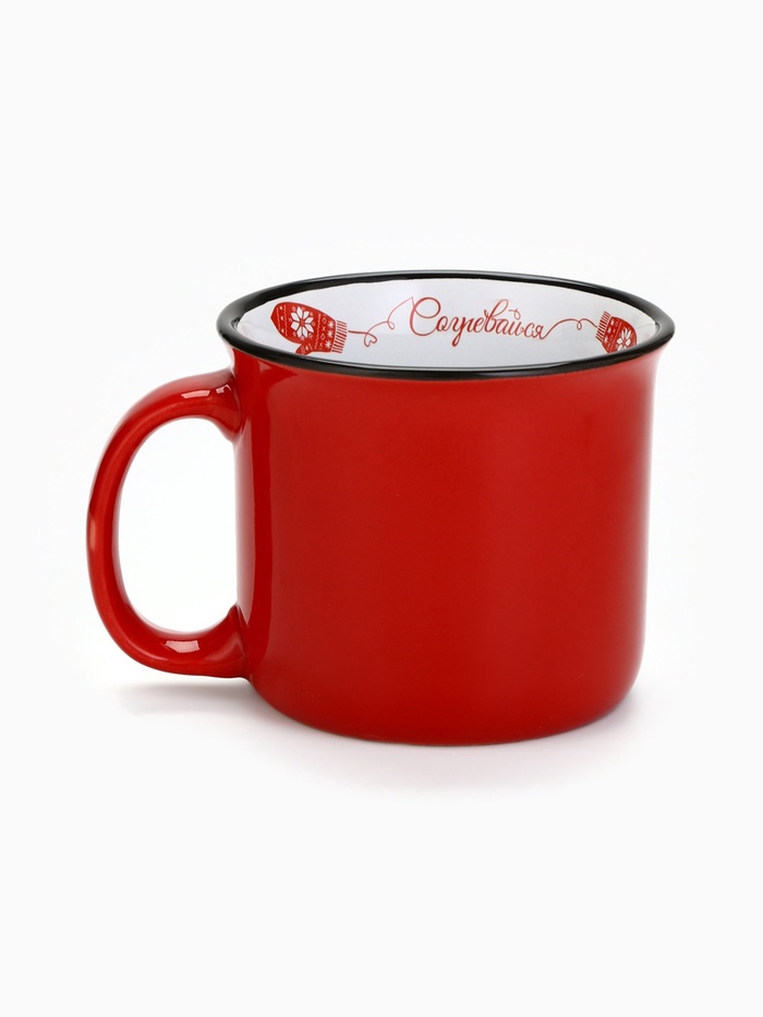 Кружка «Согревайся» — это приглашение внутрь тепла. Ярко-красная снаружи, как шапка на снегу, белая внутри — как пар над какао, и тонкая чёрная обводка, как контур утреннего света на краю подоконника. А когда подносишь кружку ближе — появляется надпись: ”Согревайся”, обрамлённая варежками, будто нарисованными пальцем на запотевшем стекле. Не команда. Не пожелание. А *забота*, высказанная без пафоса.