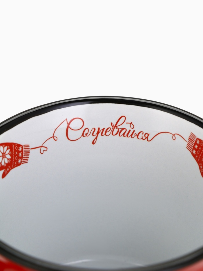 - Роспись делает каждую кружку уникальной: положение варежек, толщина линий, наклон букв могут слегка варьироваться — это не недостаток, а признак не поточного творения.
