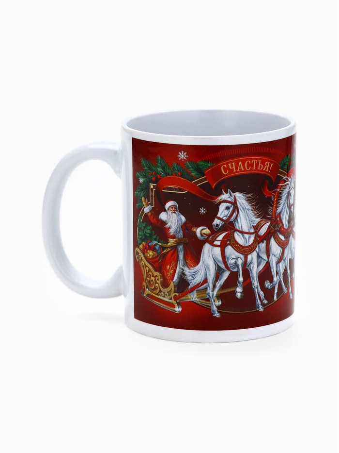 Кружка керамическая новогодняя «Тройка лошадей», 320 мл