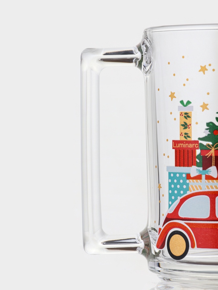 Добавьте волшебства новогоднему столу! Прозрачная стеклянная кружка с рождественским рисунком — это лаконичный и праздничный акцент для утреннего какао, глинтвейна или горячего шоколада в кругу семьи.