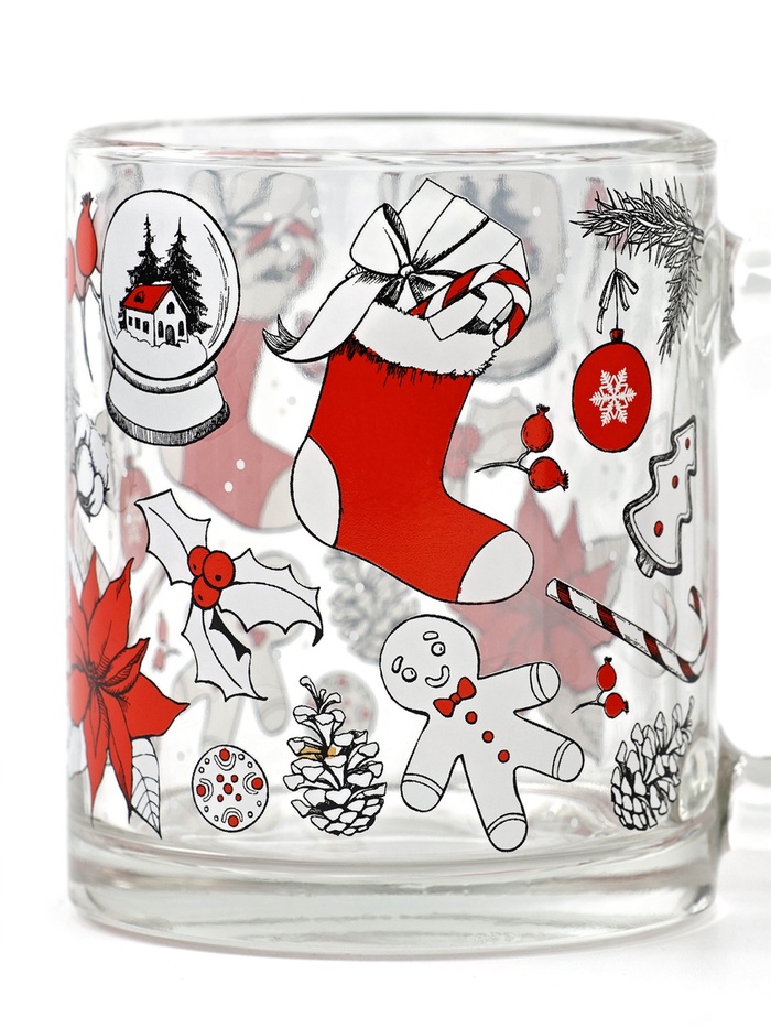 Стеклянная новогодняя кружка — это стильный и практичный аксессуар для вашей кухни или офиса.